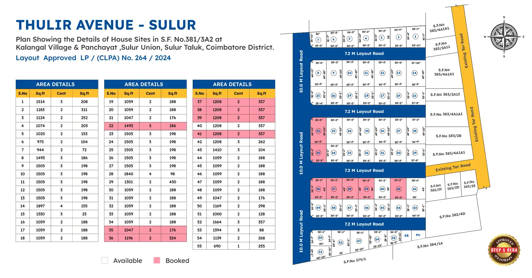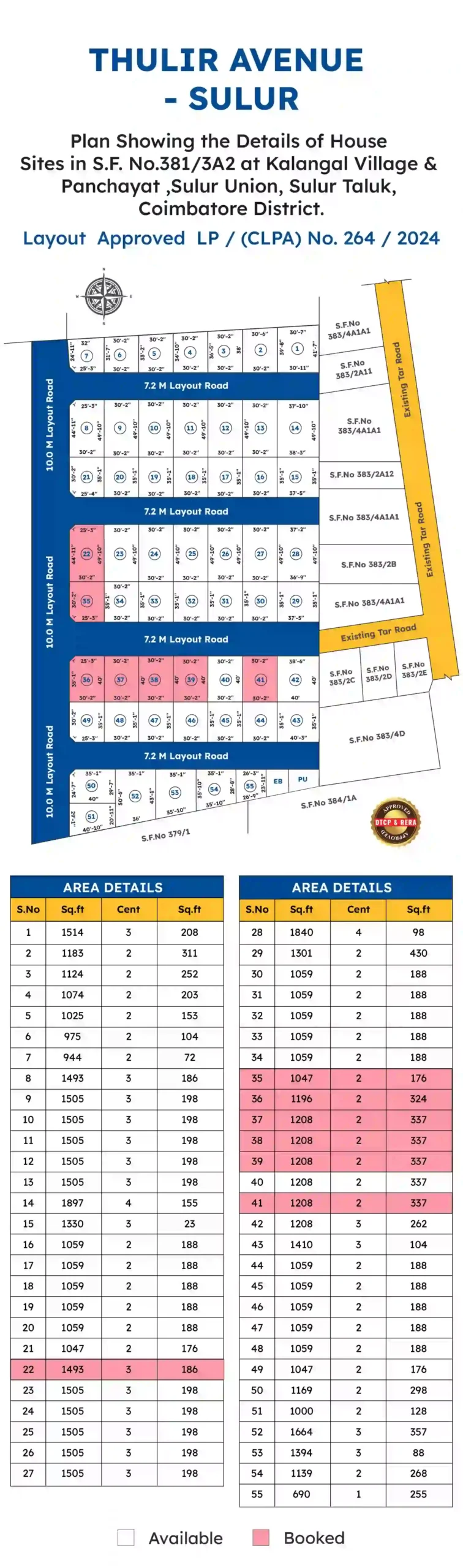 Thulir Avenue is located in Sulur, Coimbatore, a fast-developing area known for its excellent connectivity and peaceful surroundings.